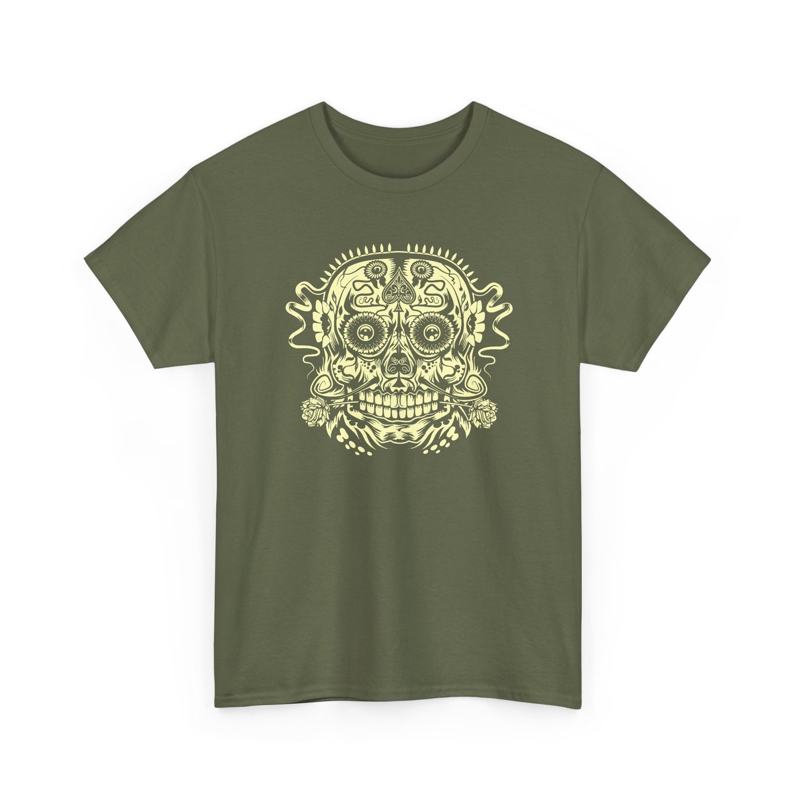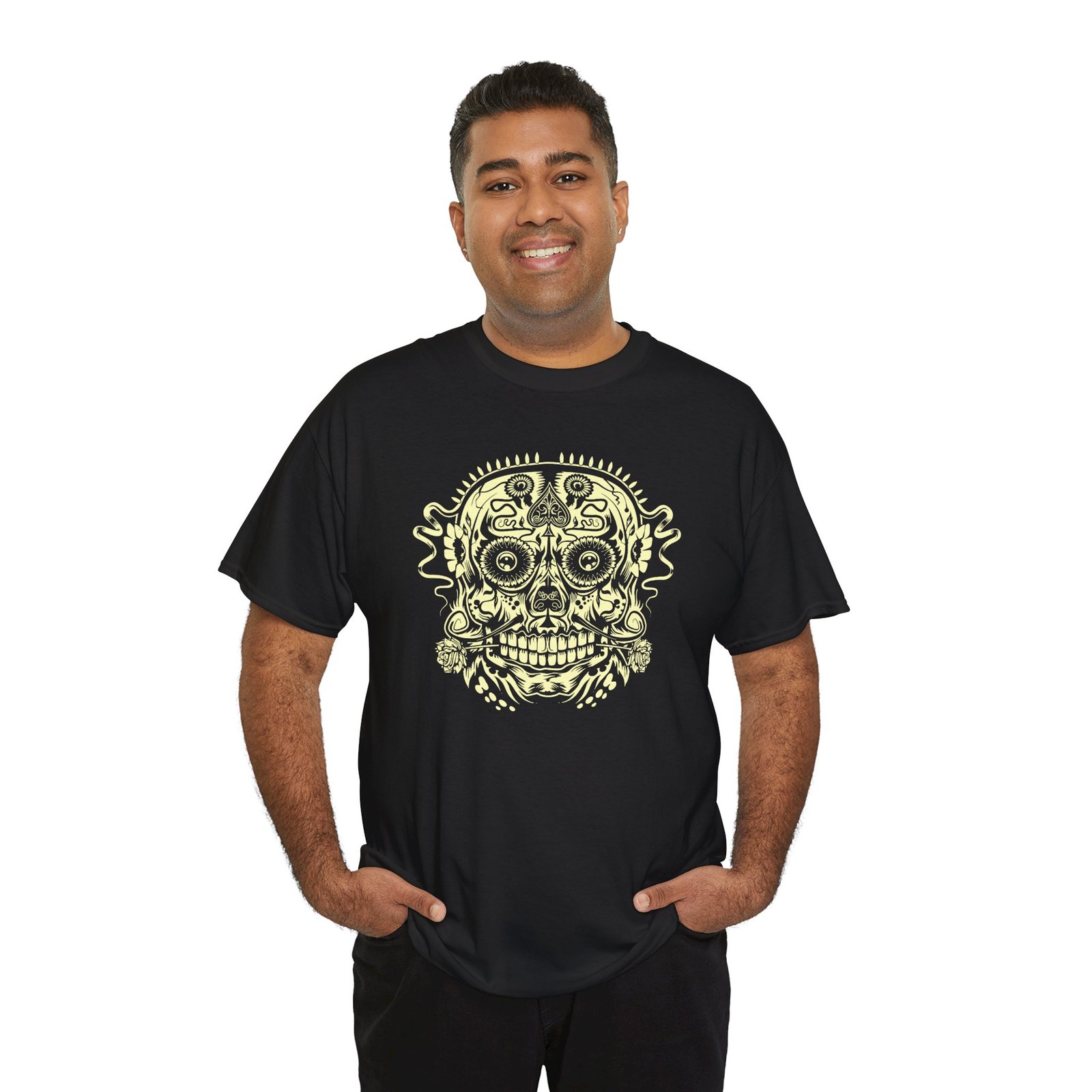 Turn heads with this striking unisex tee featuring a detailed sugar skull adorned with the iconic Ace of Spades pattern. It’s a perfect fusion of Day of the Dead artistry and rock ‘n’ roll edge—made for those who like their style fearless and unforgettable.