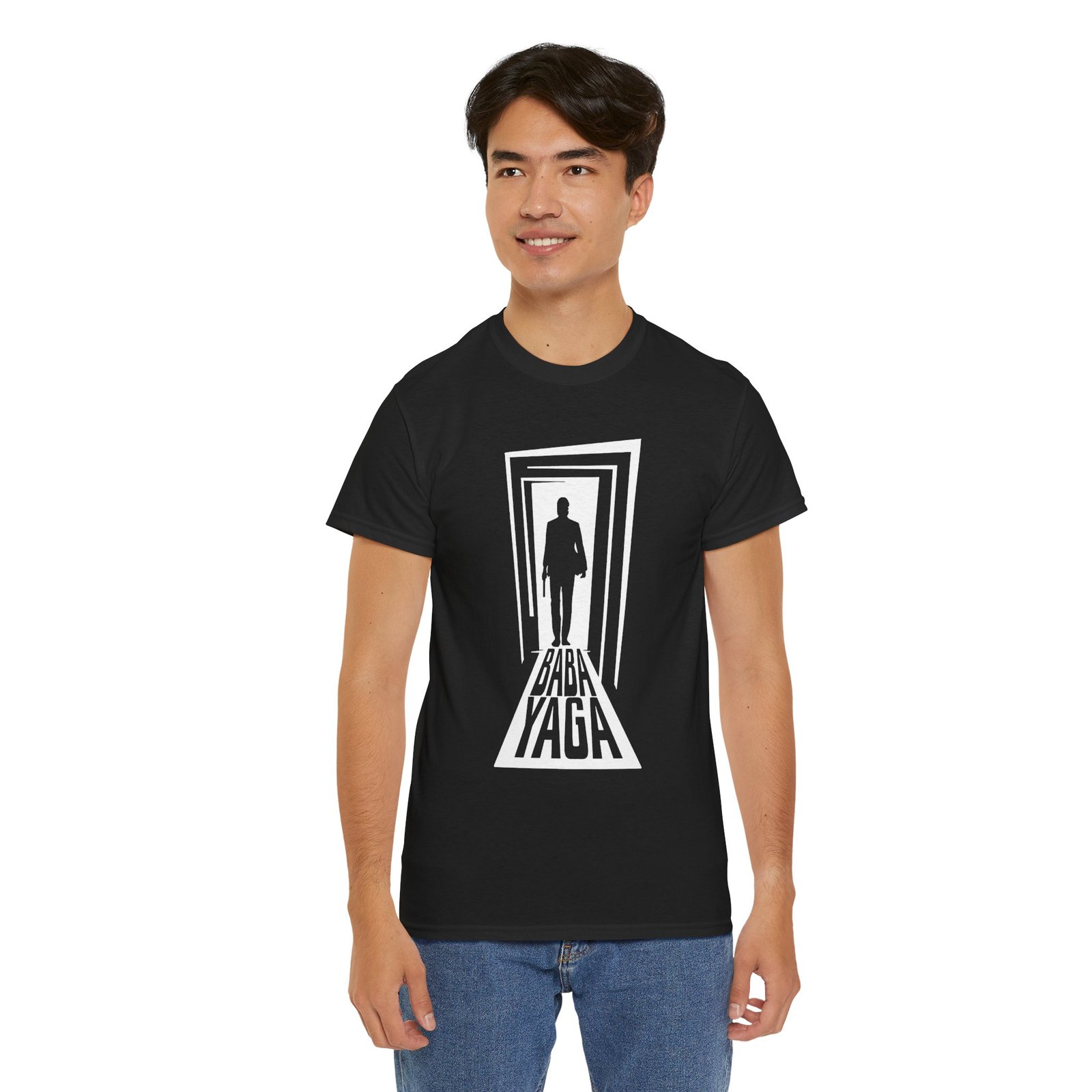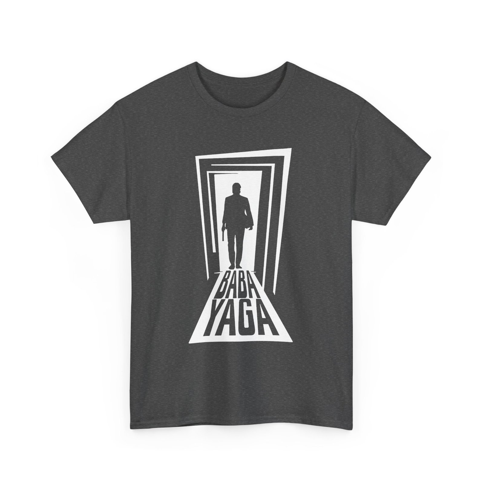 Step into legend with this Baba Yaga unisex t-shirt, featuring a striking image of a lone man with a gun standing in a doorway—his shadow stretching out beneath him with the ominous words “Baba Yaga.” Inspired by the myth and the movie icon, this design is a sleek nod to the man they send to kill the boogeyman.