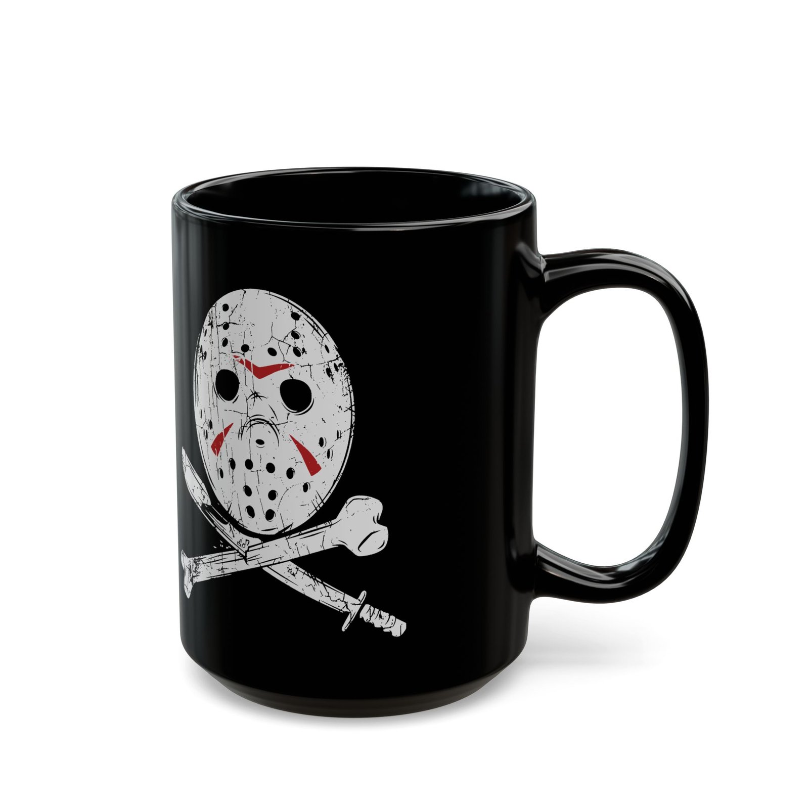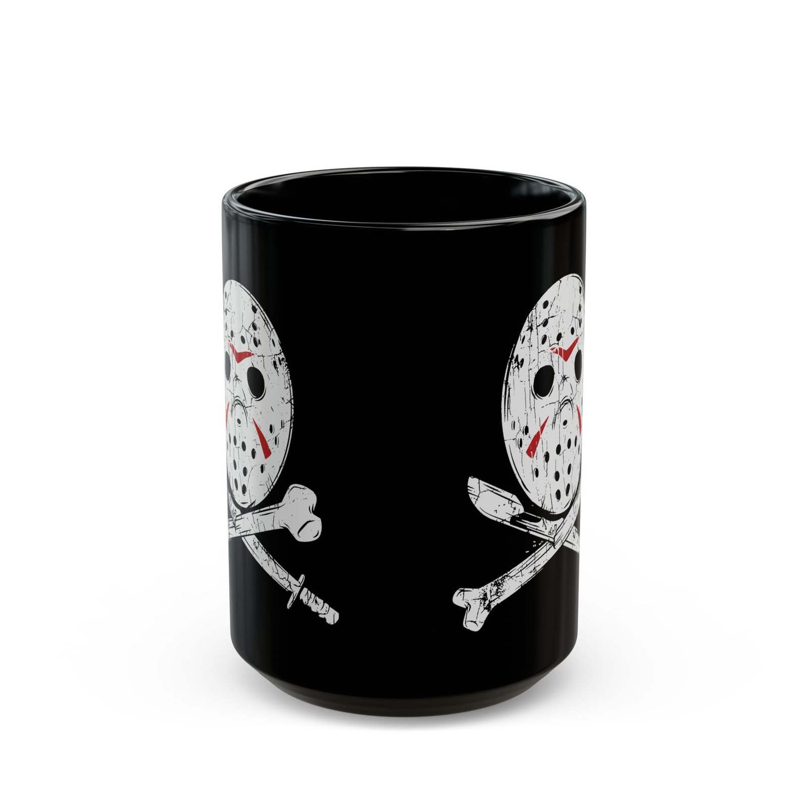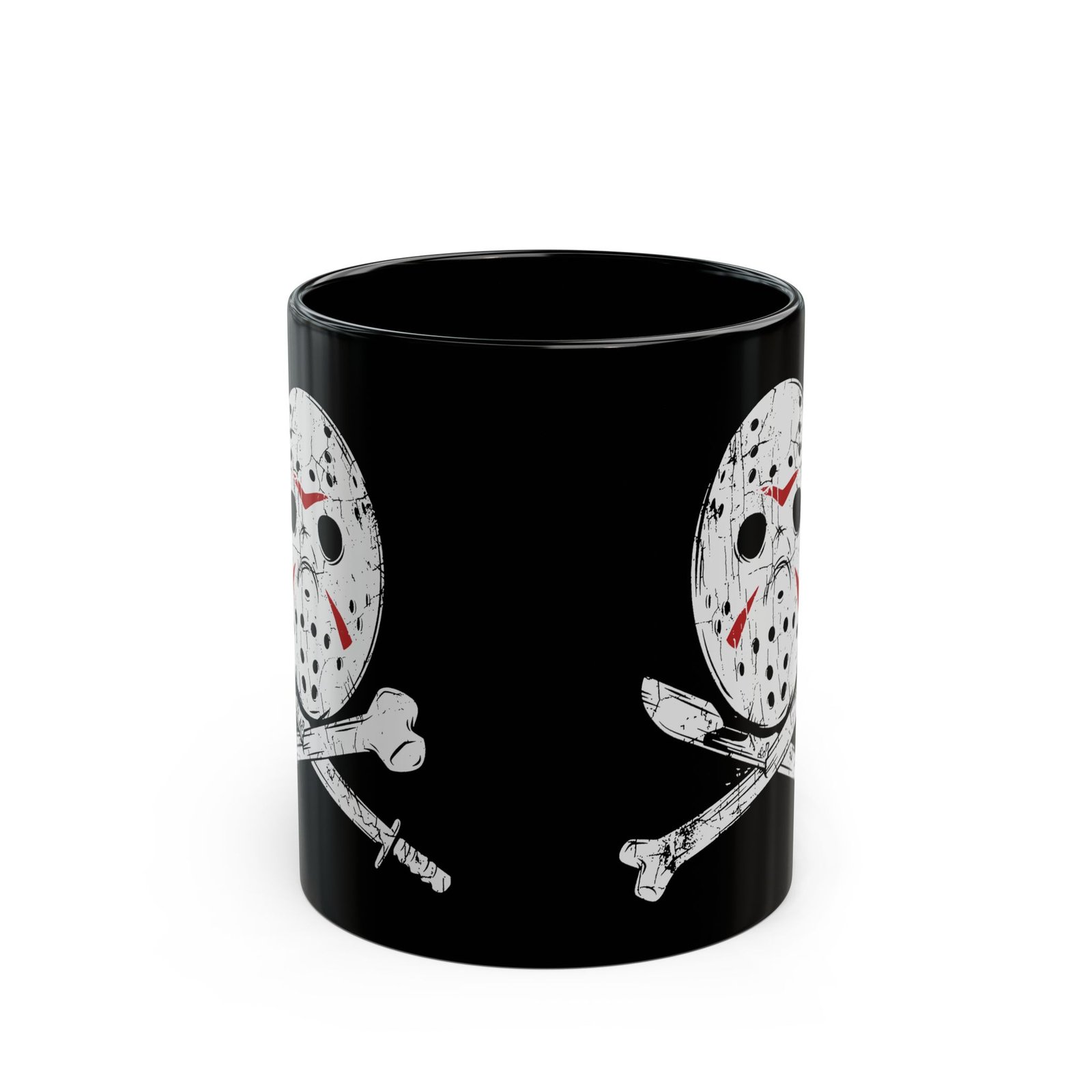 Jason Voorhees Mug, Black Horror Mug, Camp Crystal Lake Drinkware, Friday the 13th Mug, Slasher Movie Coffee Cup, Scary Graphic Mug, Machete Mask Design, Horror Fan Gift Mug