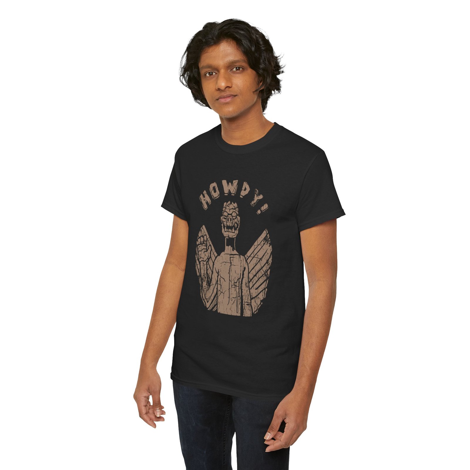 Say hello to horror history with this Captain Howdy Unisex T-Shirt! Featuring the eerie statue from The Exorcist and the ironically cheerful word “Howdy!” above it, this tee blends unsettling vibes with dark humor for true fans of the macabre.