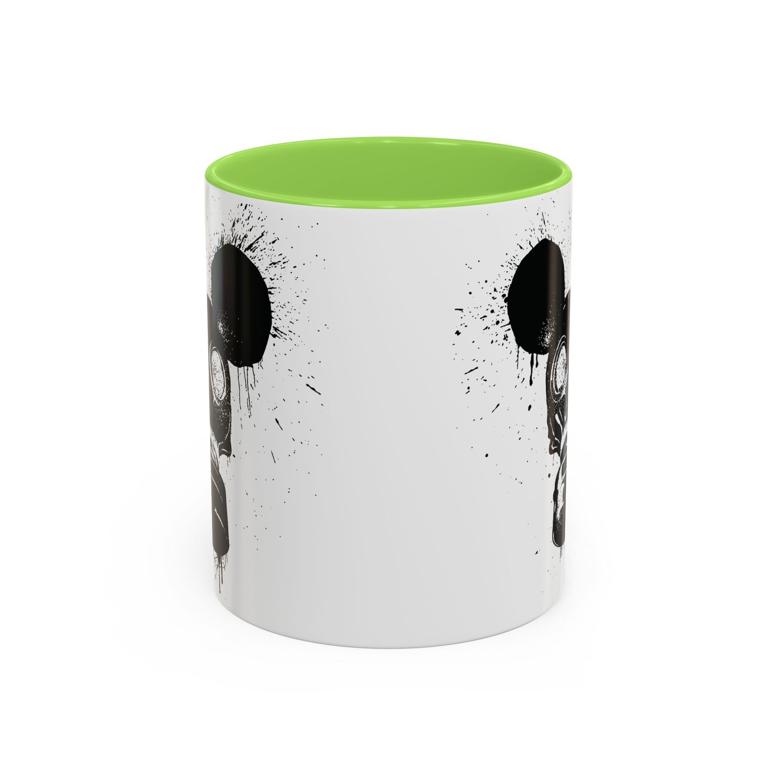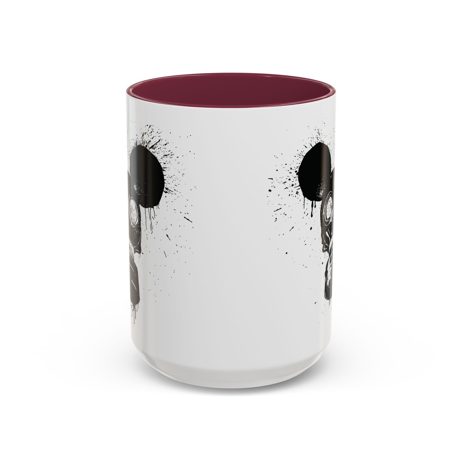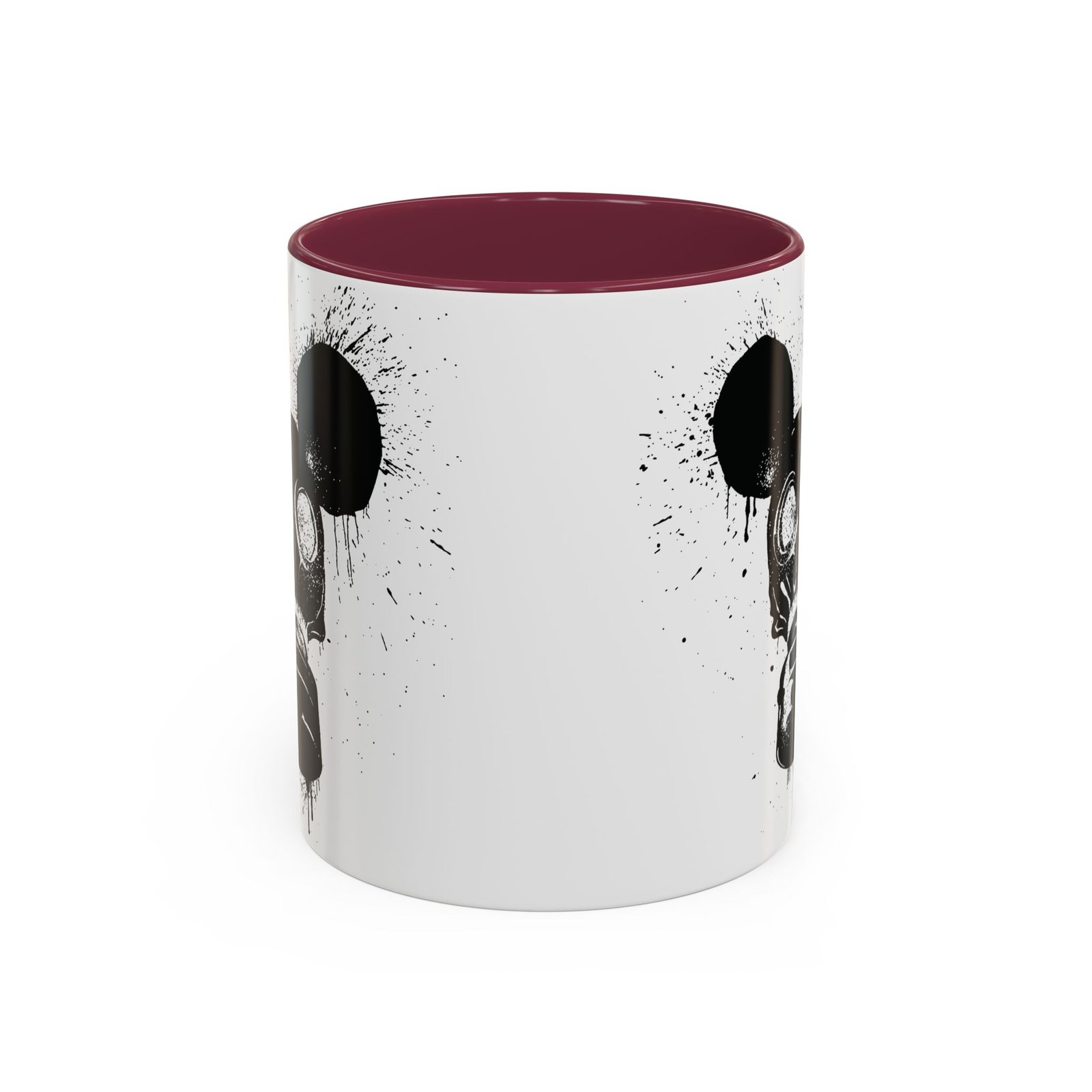 Start your day with a dose of dystopian charm and unexpected cuteness with the Gas Mask Mouse Accent Mug. Featuring a bold design of a mouse head in a gas mask, this eye-catching mug is perfect for those who like their mornings a little weird, a little dark, and totally unique.