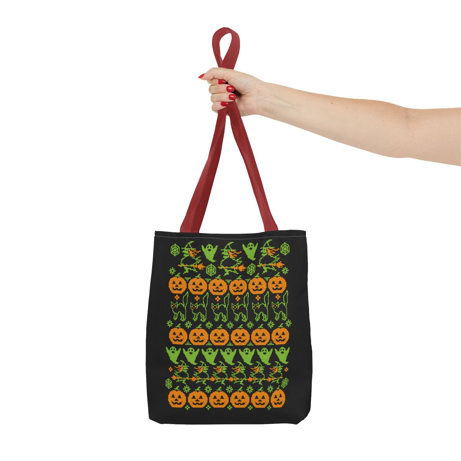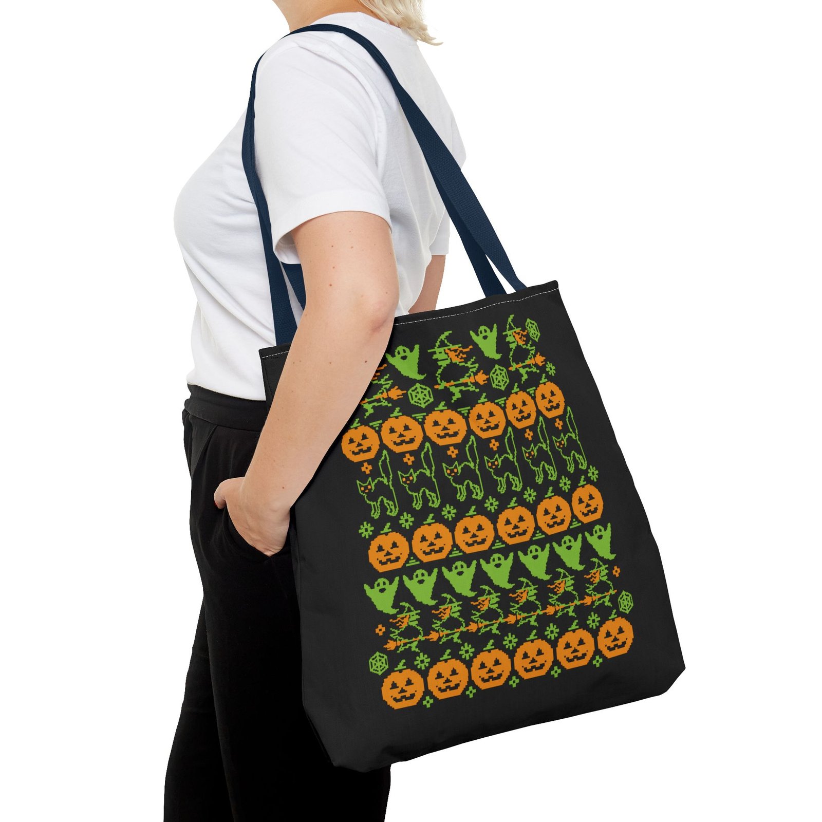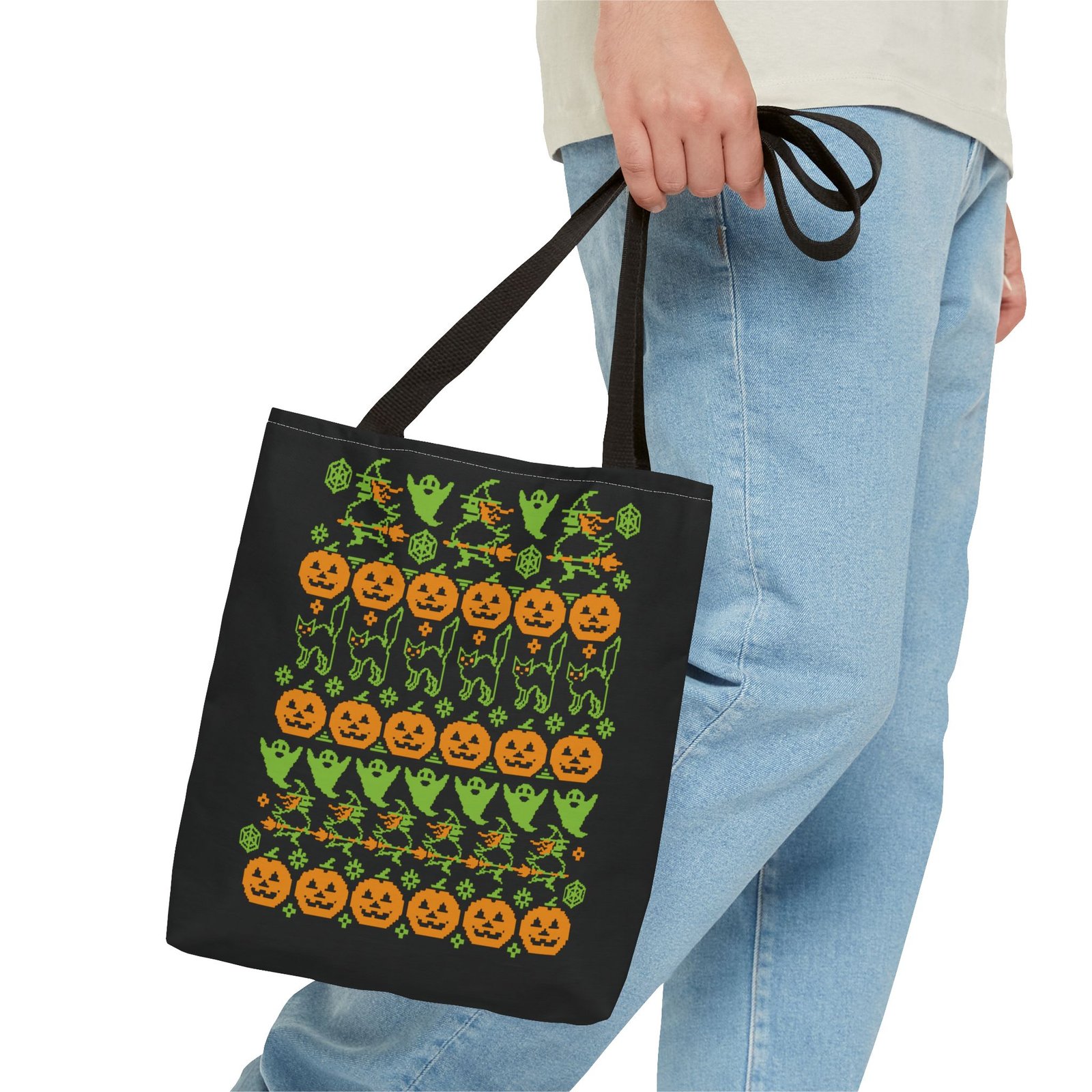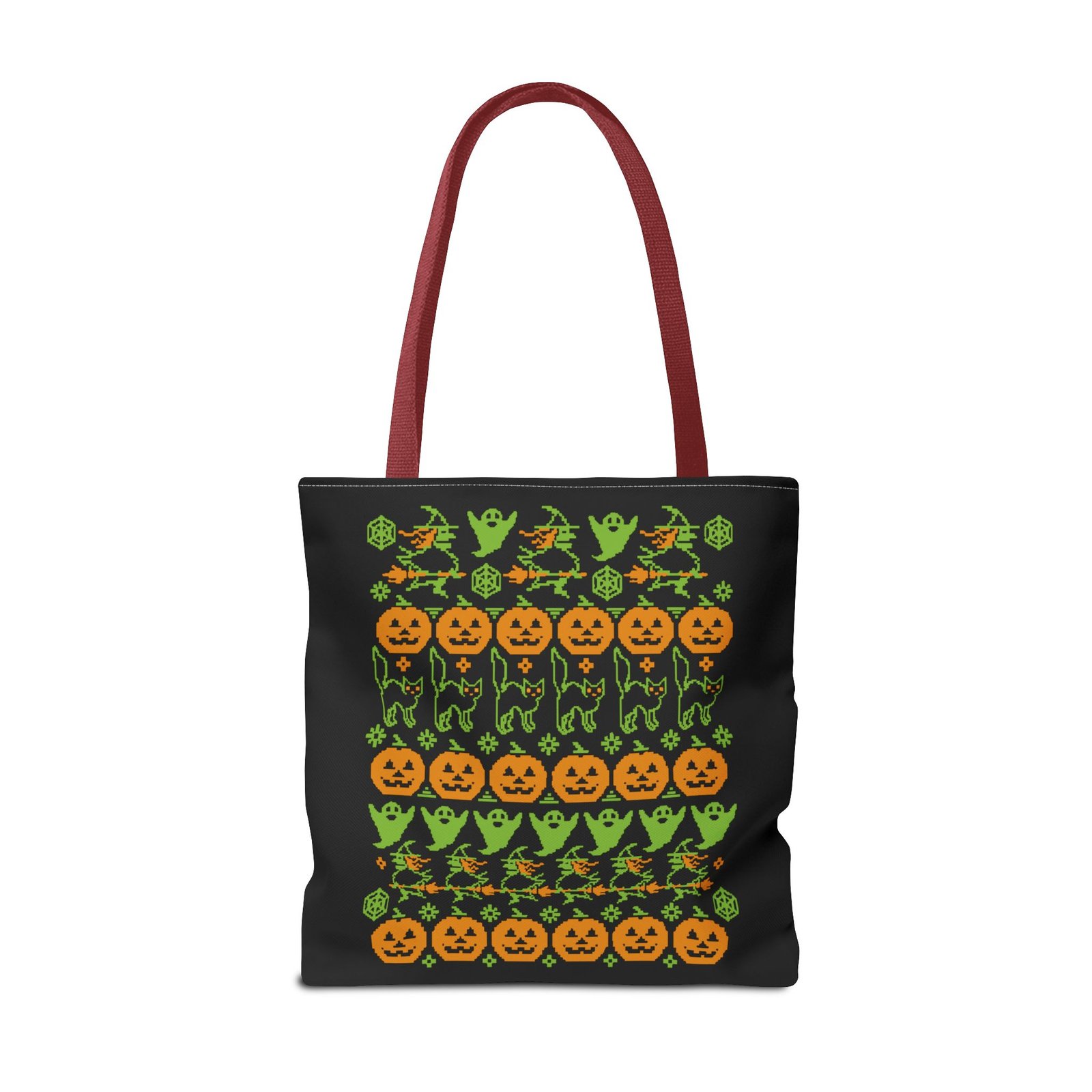 Tags: halloween ugly sweater tote, spooky fall tote bag, pumpkin bat tote, halloween patterned bag, gothic halloween accessory, halloween candy tote, ugly sweater halloween bag, festive halloween tote, creepy cute tote, black portal merch