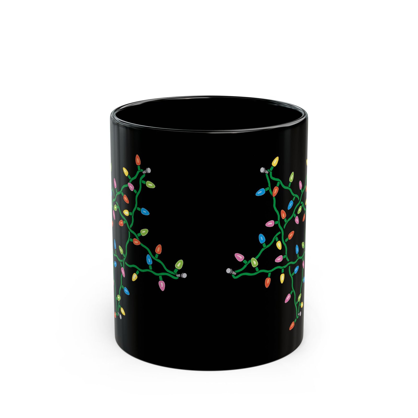 Holiday Pentagram Mug, Gothic Christmas Mug, Black Festive Mug, Pentagram Lights Mug, Funny Occult Drinkware, 11 oz Spooky Mug, 15 oz Witchy Mug, Alternative Christmas Mug, Dark Humor Holiday Cup, Edgy Cocoa Mug