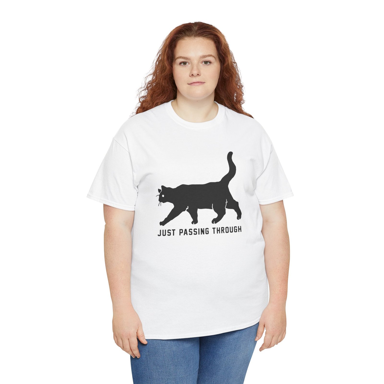Keep it cool and a little mystical with this unisex tee featuring a sleek black cat and the words Just Passing Through. Perfect for cat lovers, night owls, and anyone who enjoys a touch of mystery in their style.