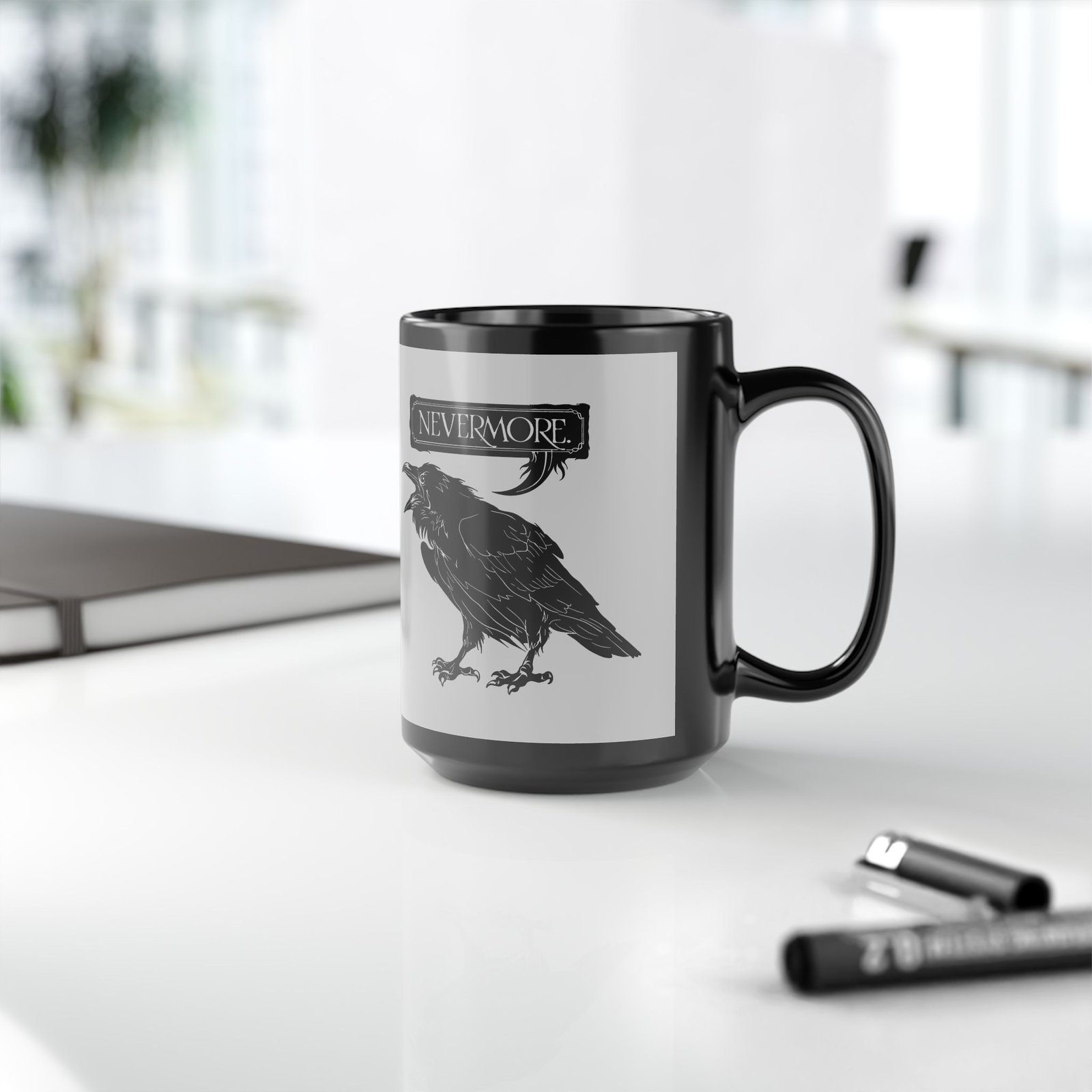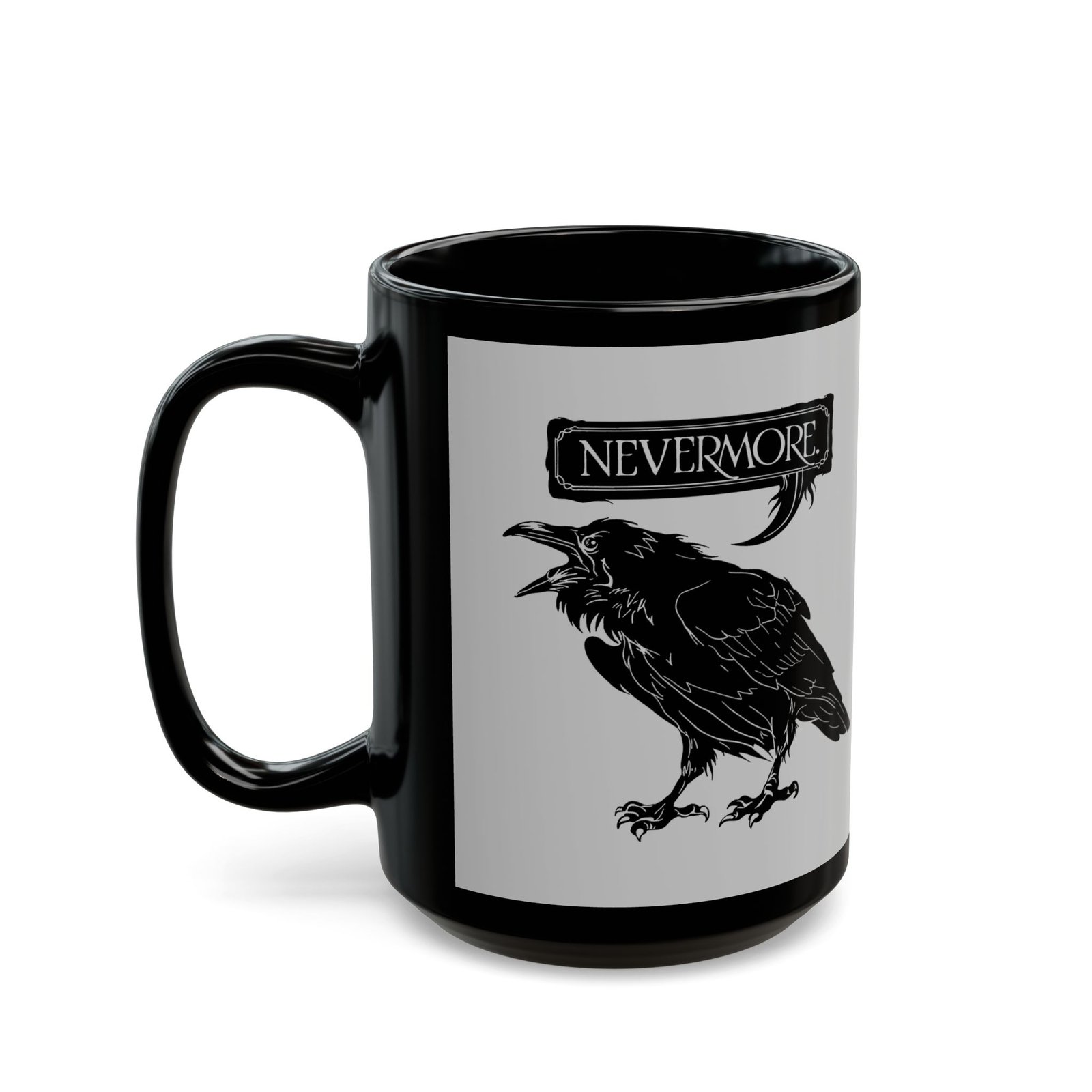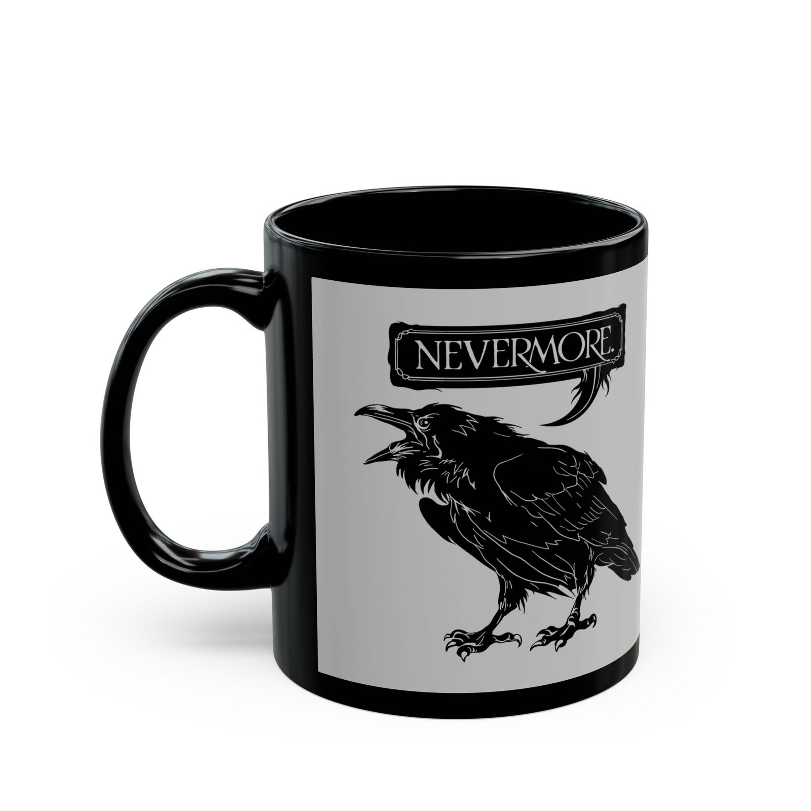 Add a poetic chill to your morning brew with this Nevermore black ceramic mug. Featuring a bold raven perched above the iconic word “Nevermore,” this 11 or 15 oz mug is a stylish nod to Edgar Allan Poe’s timeless classic. Perfect for late-night readers, early-morning thinkers, and lovers of all things dark and literary.