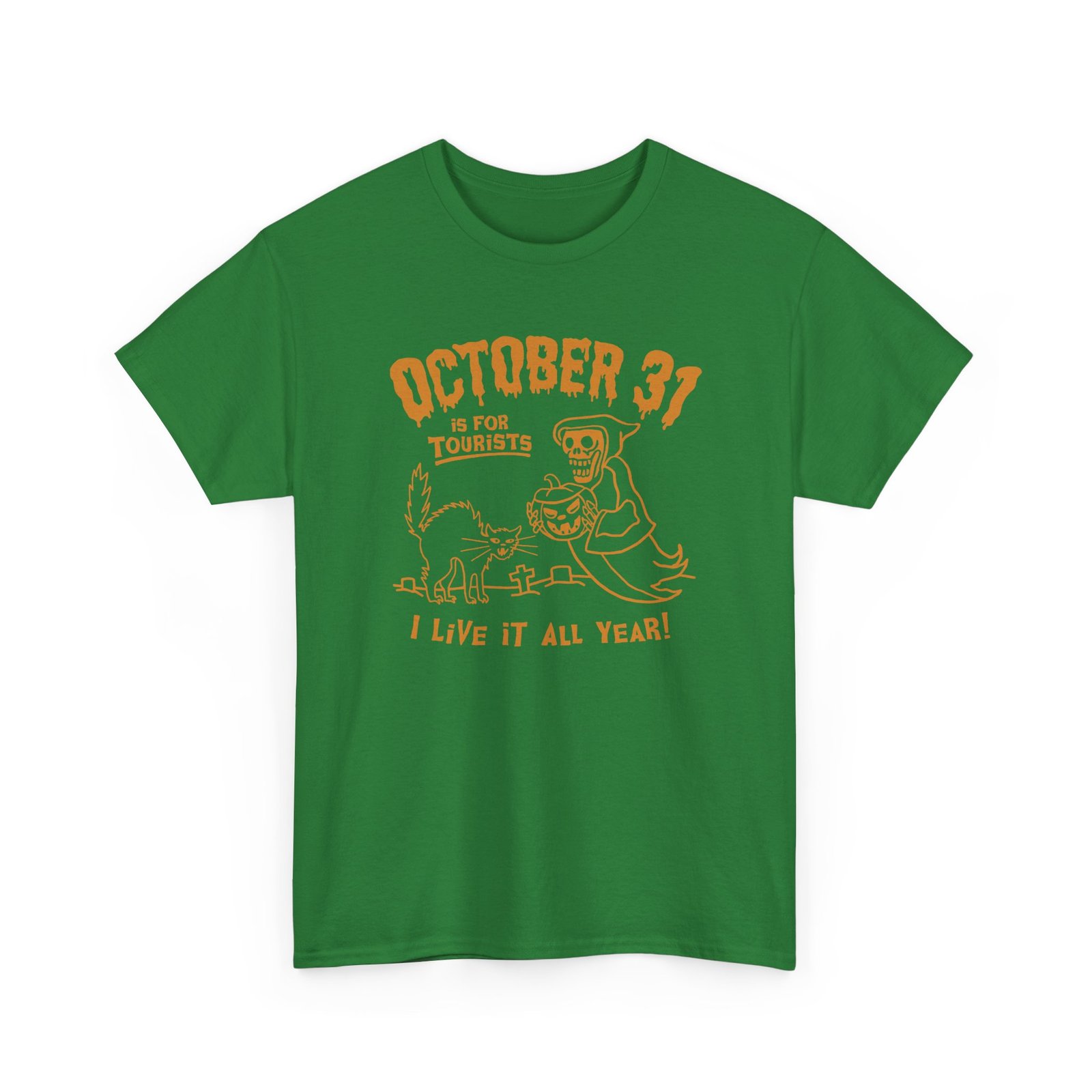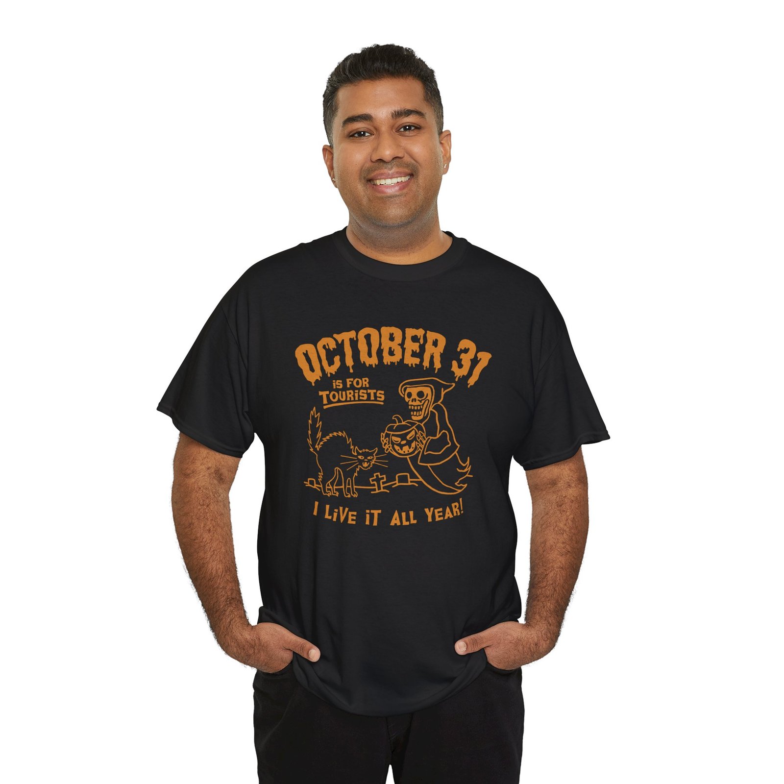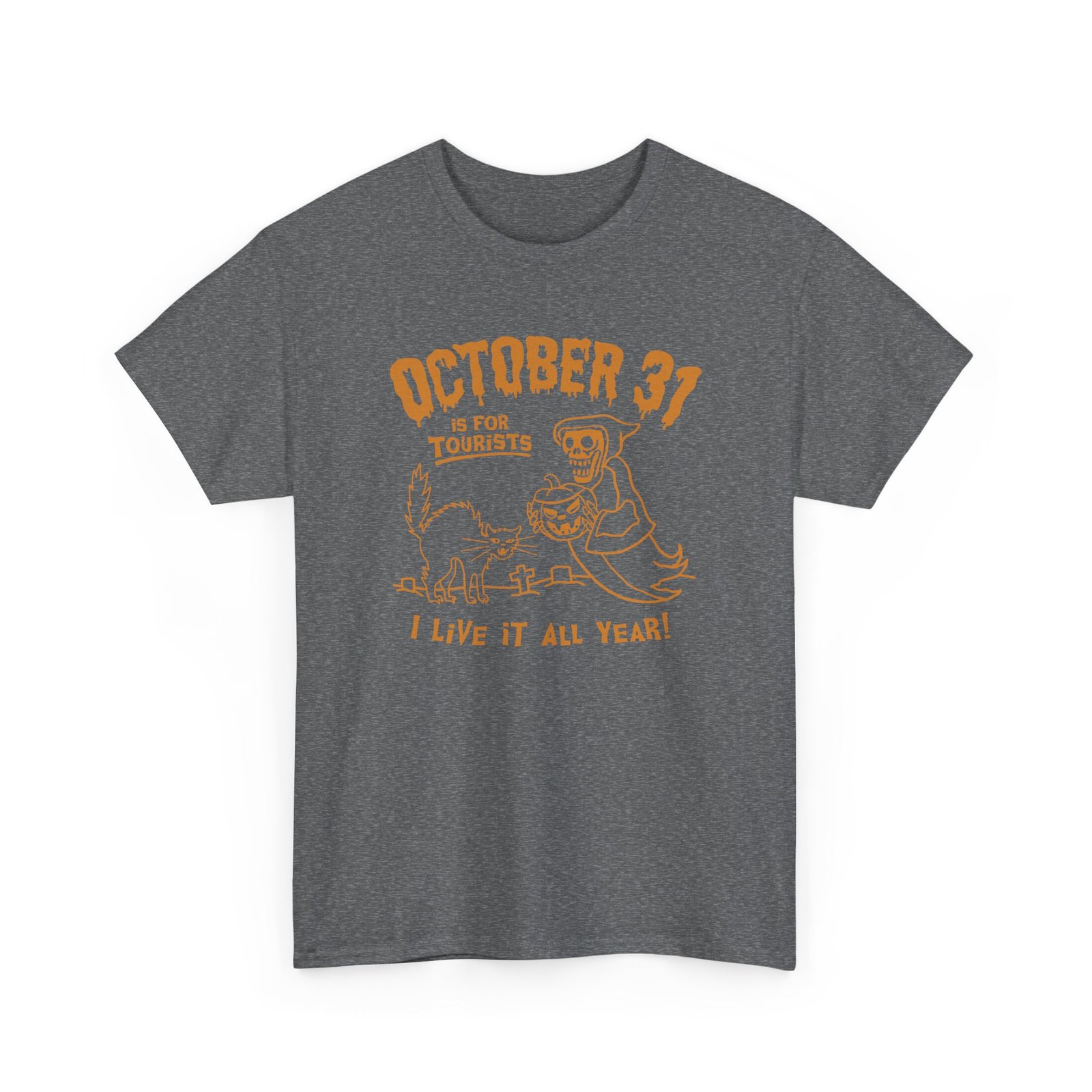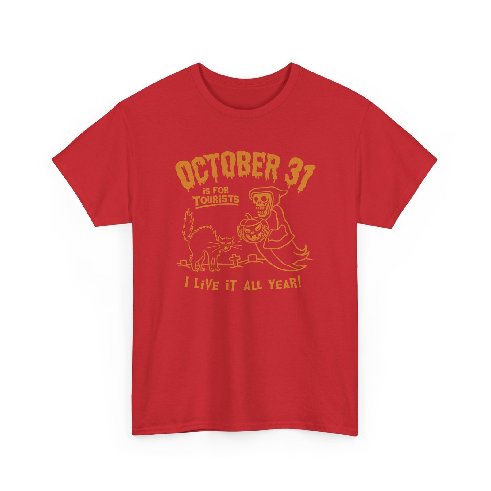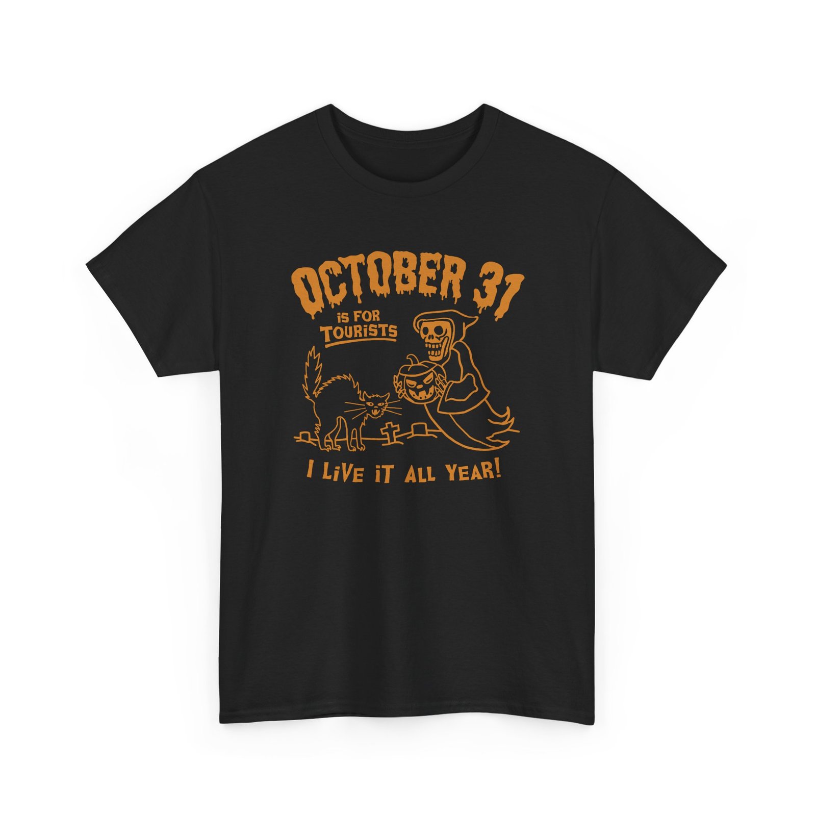 Why limit the spooky vibes to just one night? This October 31st Is For Tourists, I Live It All Year Unisex T-Shirt is for the true Halloween die-hards who keep the spirit creepy 24/7/365.