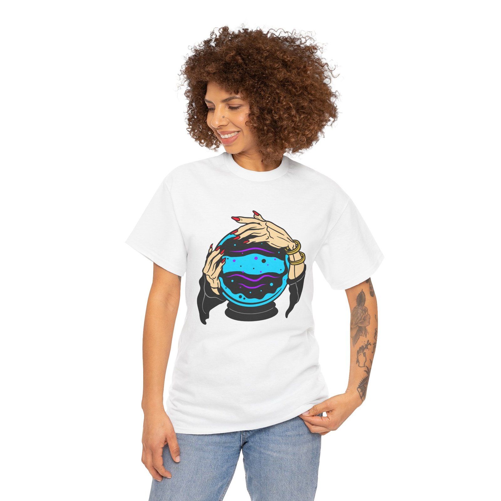Crystal Ball T-Shirt, Psychic Hands Tee, Mystic Vibes Shirt, Fortune Teller Apparel, Witchy Unisex Tee, Occult Graphic Shirt, Astrology Gift Shirt, Spiritual Humor Tee