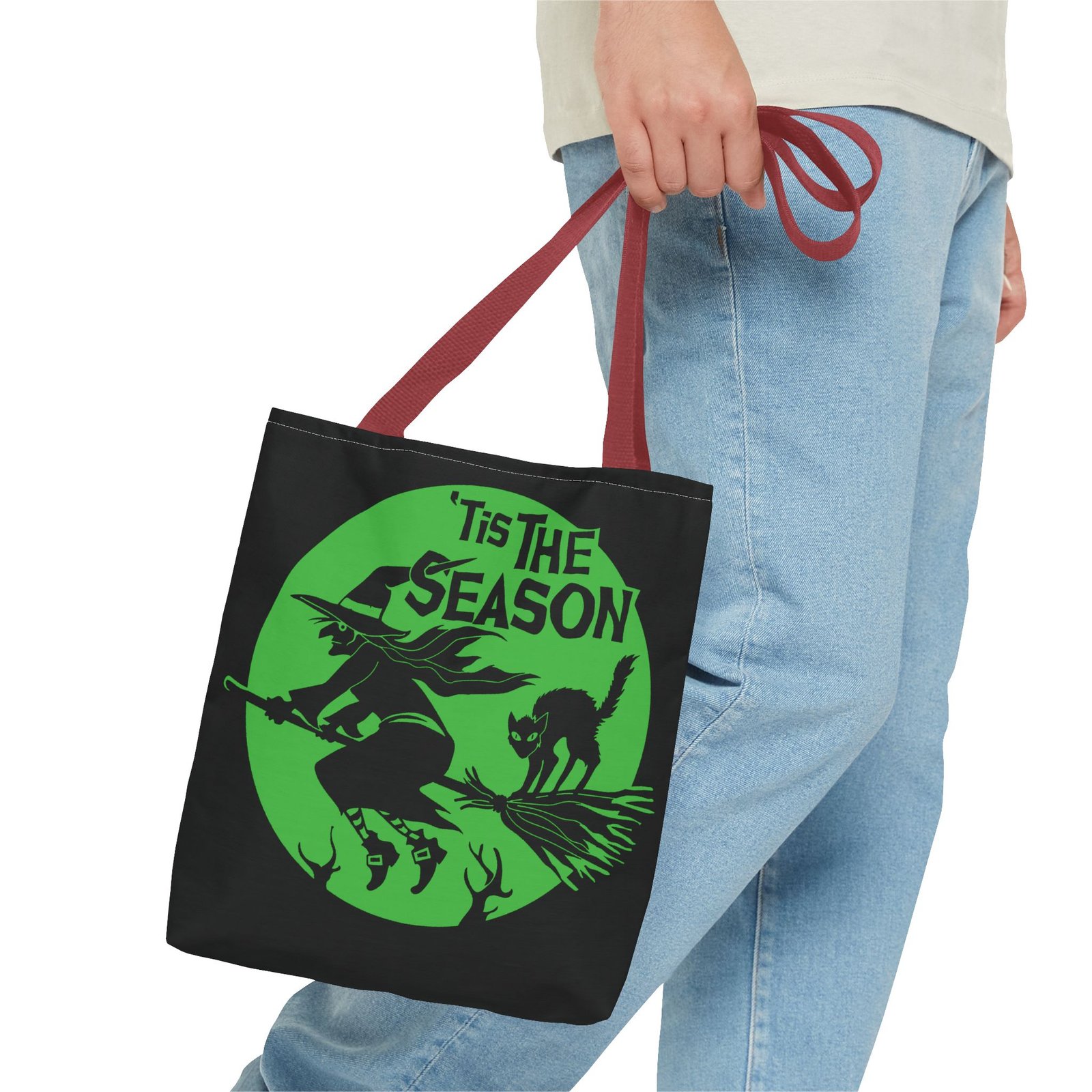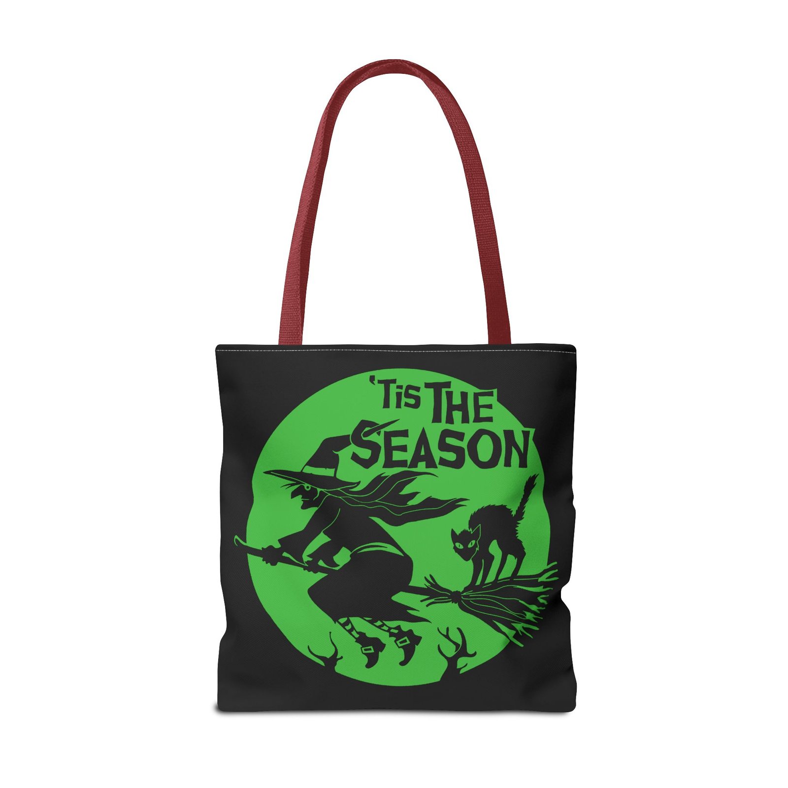 Tags: season of the witch tote, witch flying with cat bag, halloween witch tote, spooky witch tote bag, halloween broomstick bag, gothic witchy tote, halloween candy tote, magical witch tote, enchanted halloween bag, black portal merch
