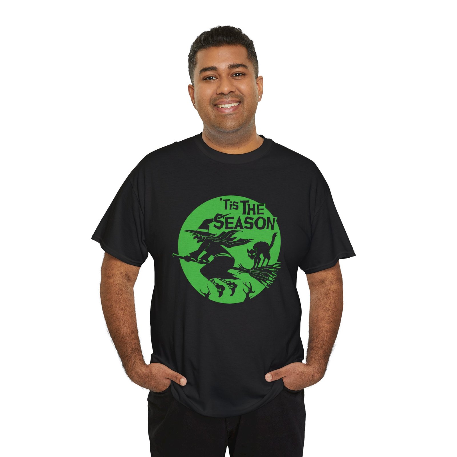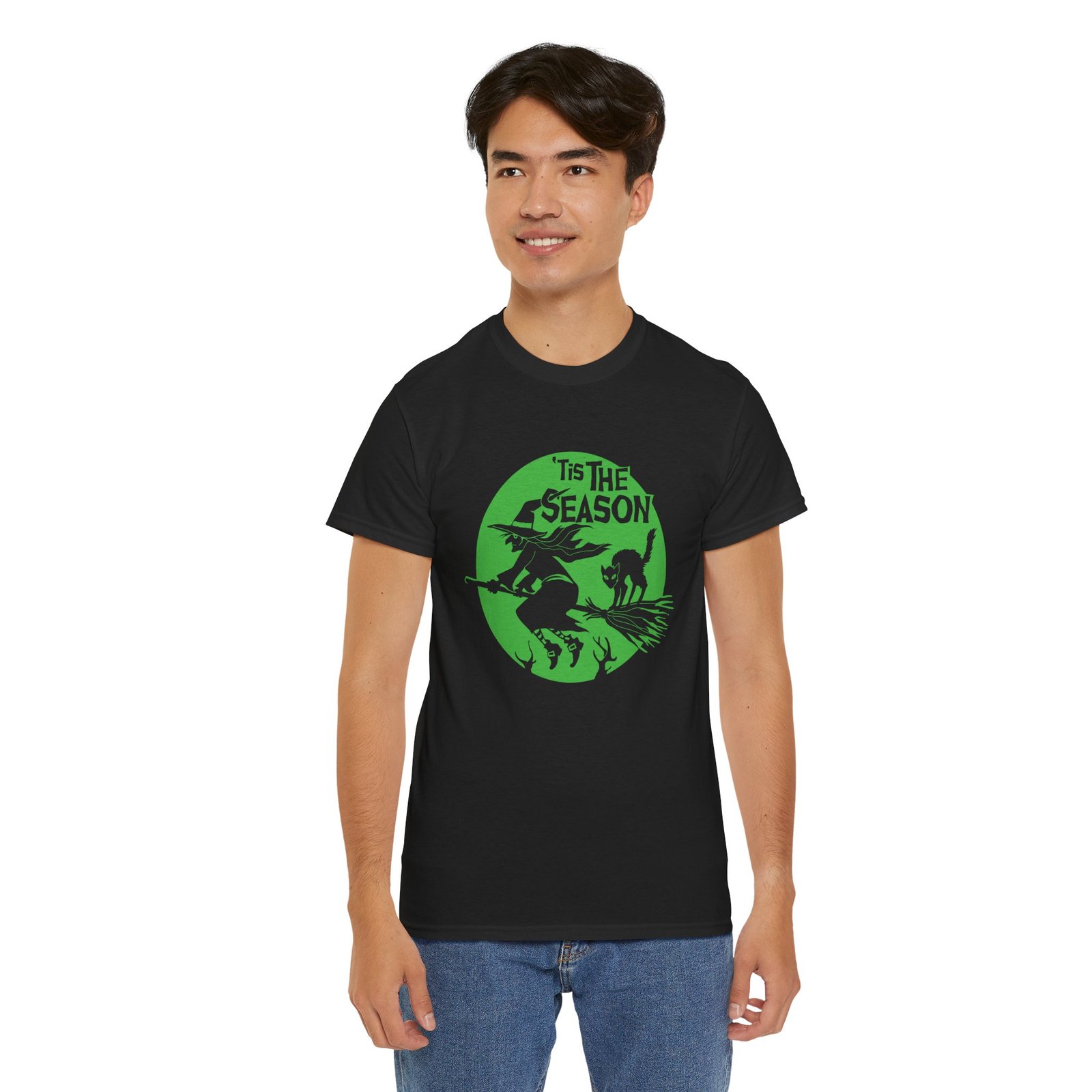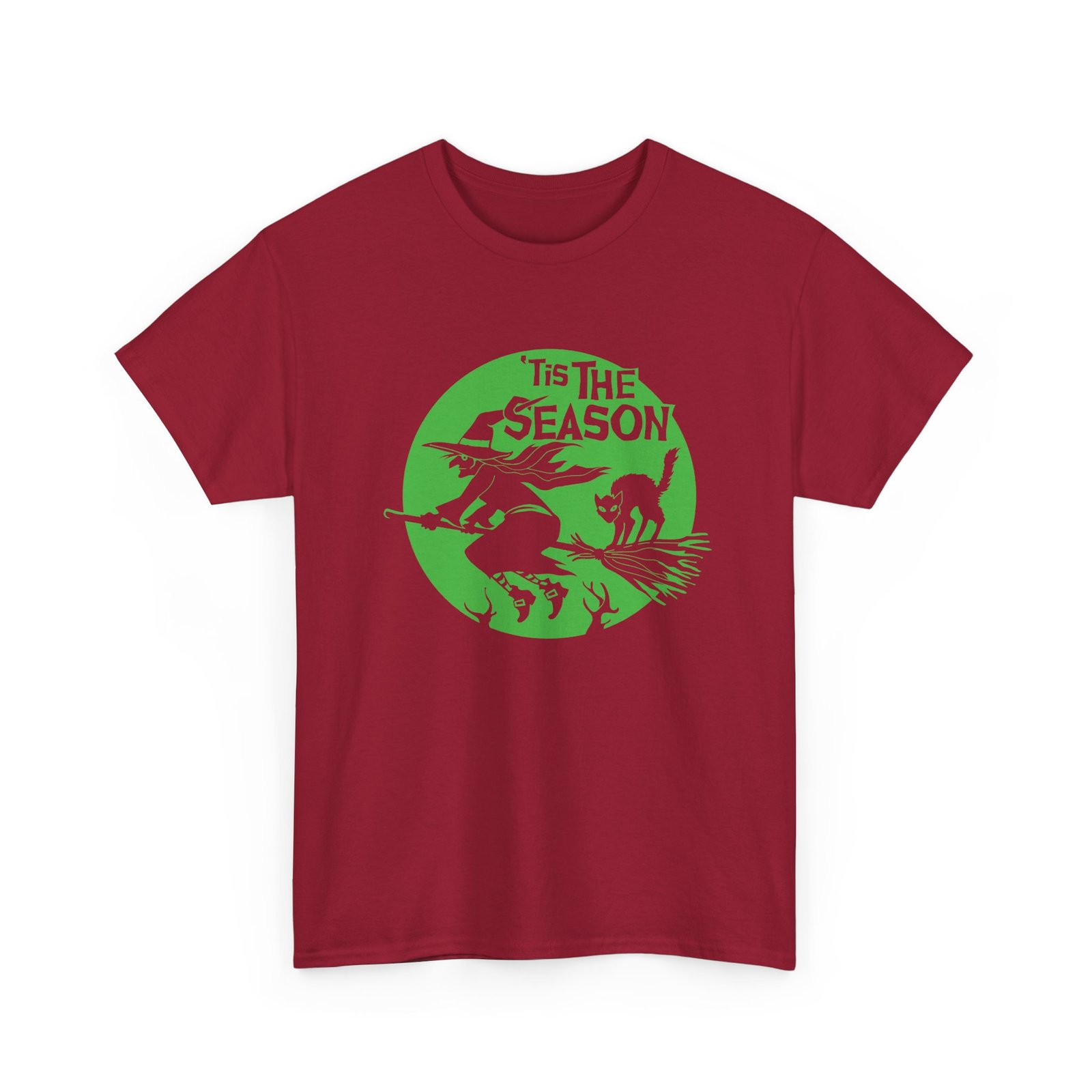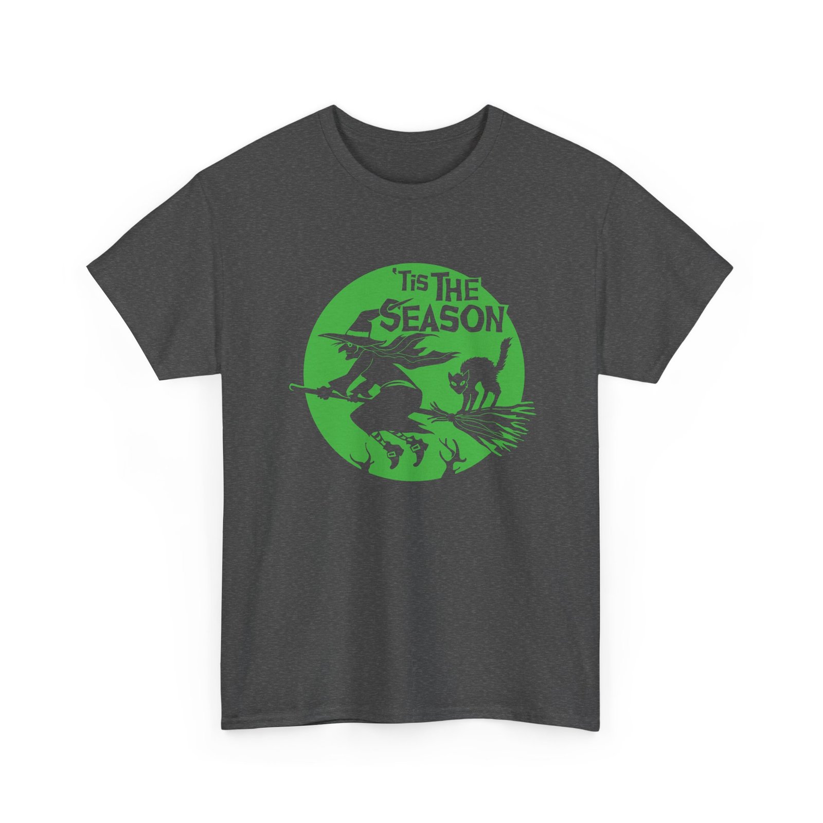 ’Tis the Season Shirt, Witch and Cat T-Shirt, Halloween Unisex Tee, Spooky Season Shirt, Flying Witch Graphic Tee, Black Cat on Broom Shirt, Full Moon Halloween Shirt, Fall Aesthetic Tee, Witchy Apparel, Halloween Lover Gift Shirt